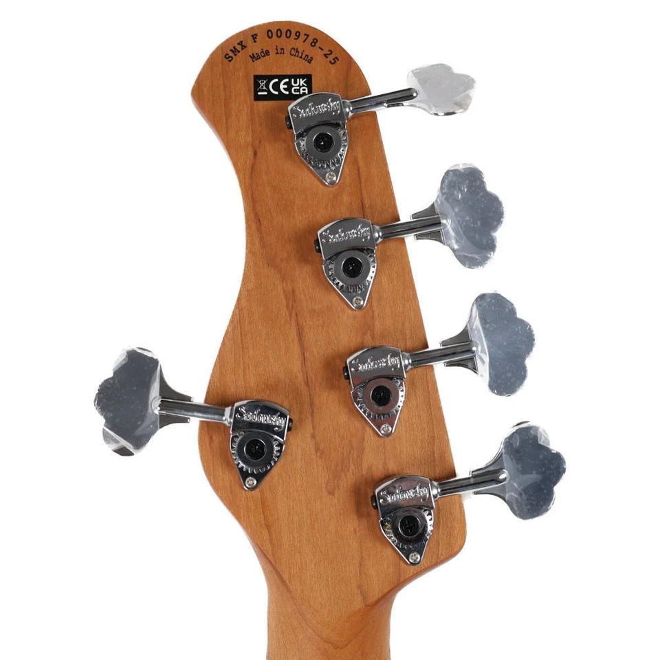 El puente Sadowsky con sistema quick string release permite cambios de cuerda rápidos y mantiene una afinación estable. Además, las clavijas Sadowsky Light de engranaje abierto aseguran una sintonía precisa sin añadir peso innecesario.
