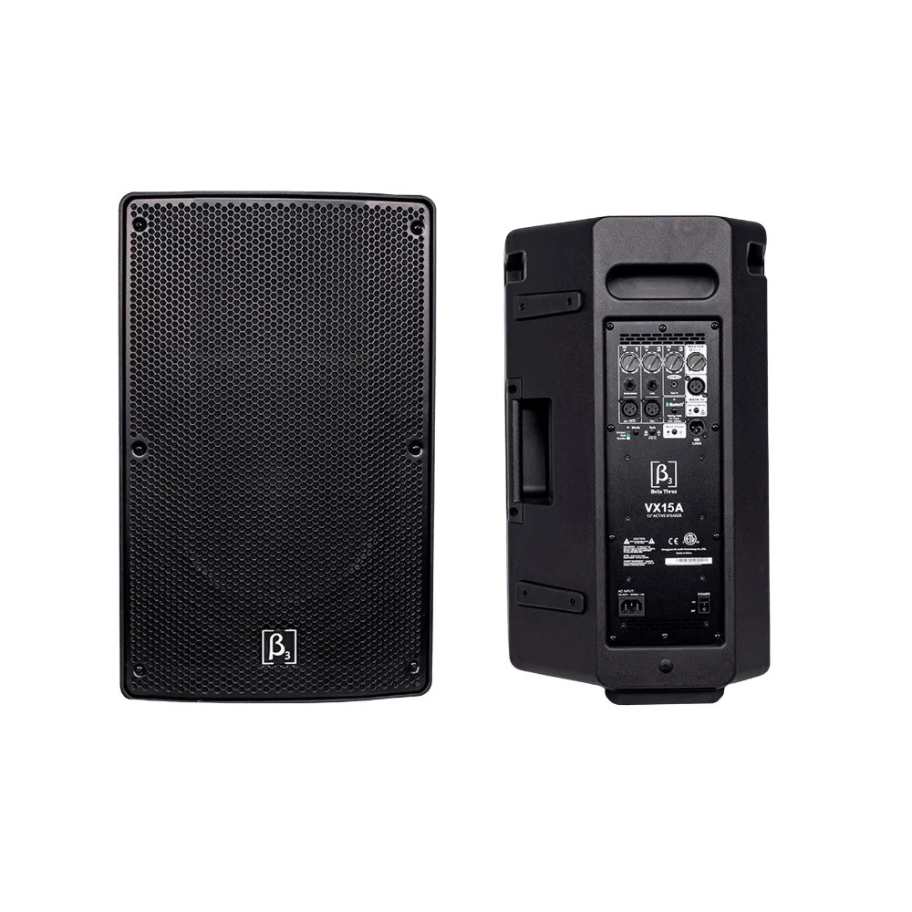 La Beta Three VX15A es una cabina activa profesional de 15 pulgadas, diseñada para ofrecer un sonido potente, claro y equilibrado en aplicaciones de refuerzo sonoro. Su sistema activo de dos vías con amplificación integrada permite una instalación rápida y un desempeño confiable tanto en eventos móviles como en instalaciones fijas.